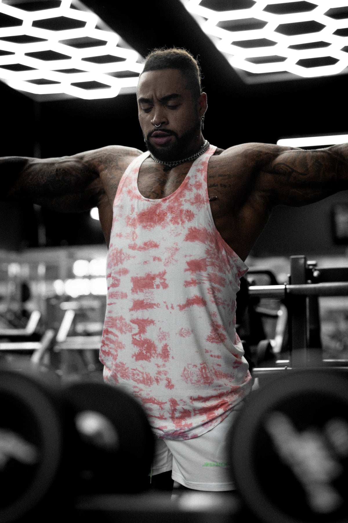 Classic Bodybuilding Racerback Stringer - Red Tie Dye
