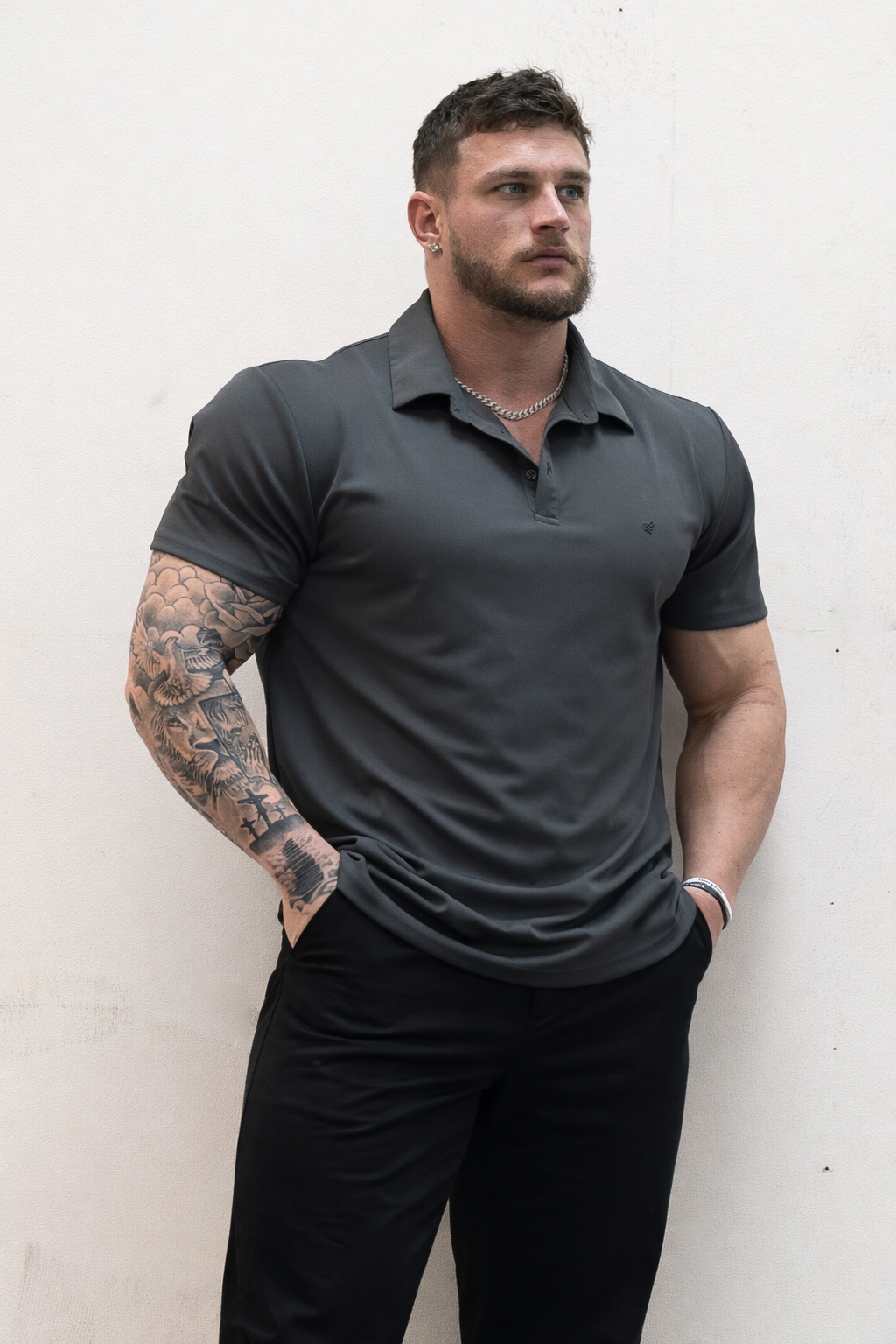 Premium Muscle-Fit Polo Tee w/ Zipper - Dark Gray