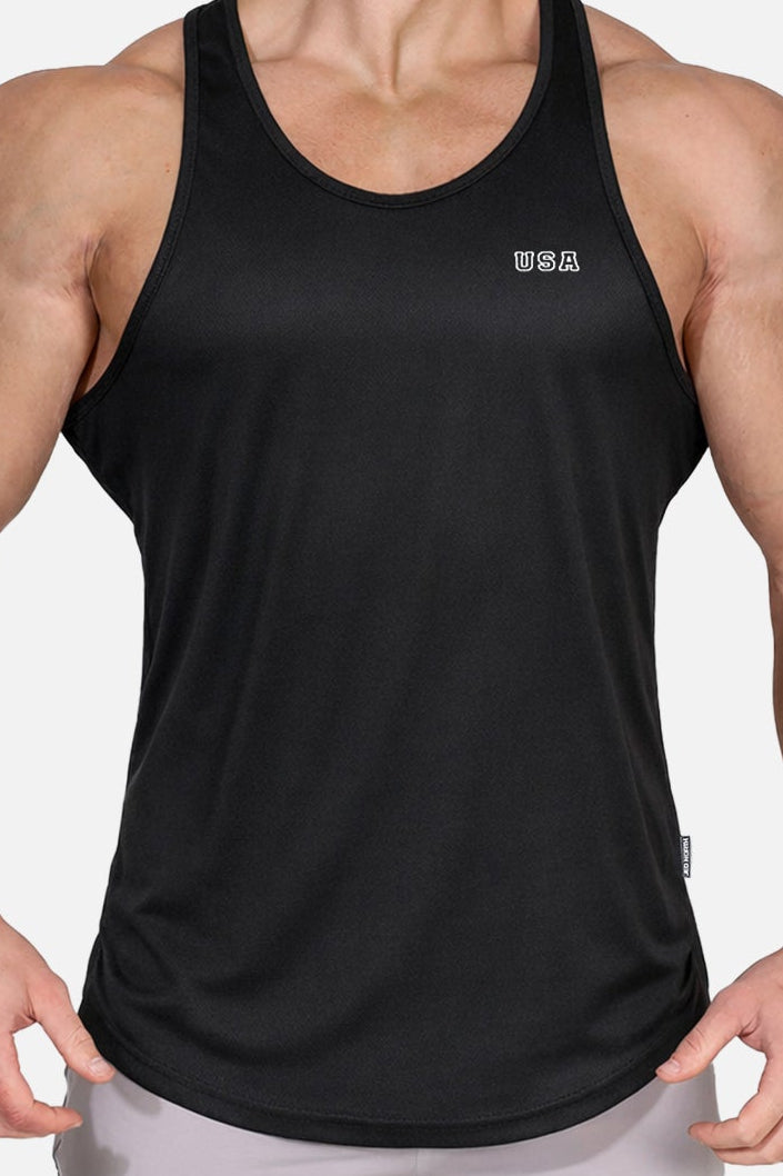 Fast-Dry Bodybuilding Workout Stringer - Black USA Logo