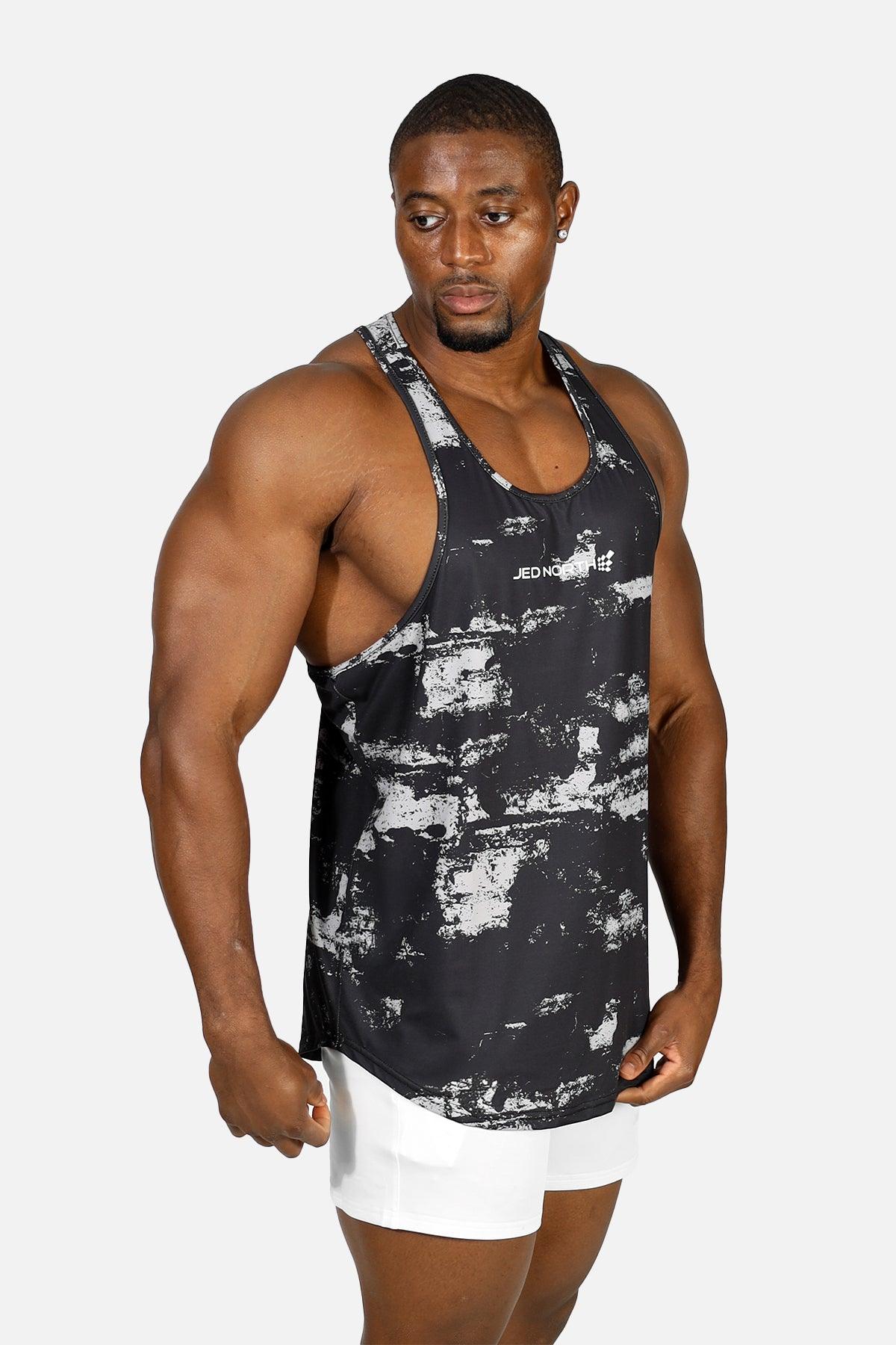 Graphic Muscle Stringer - Silver Brush Strokes