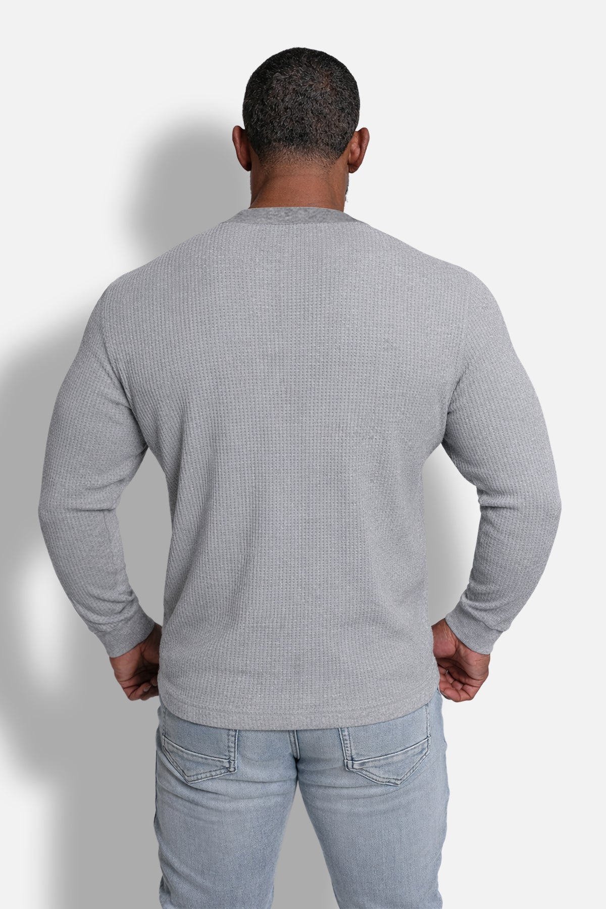Waffle Knit Henley Long Sleeve T-Shirt - Dark Gray